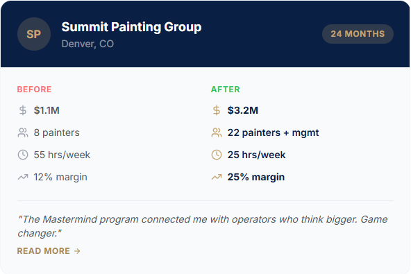 Stephen Reynolds shares how joining Painter Growth after a major project failure helped him improve systems, strengthen his team, and double monthly revenue to $40K–$60K.
